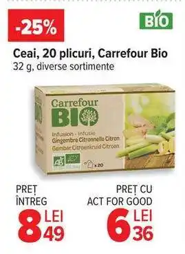 Ofertă Ceai, 20 plicuri, Carrefour Bio la Carrefour
