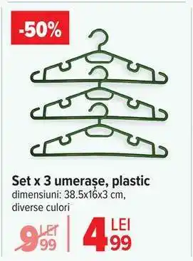 Acum în ofertă la Carrefour: Set x 3 umerașe, plastic ✅ Valabil de la 14-01 până la 10-02.