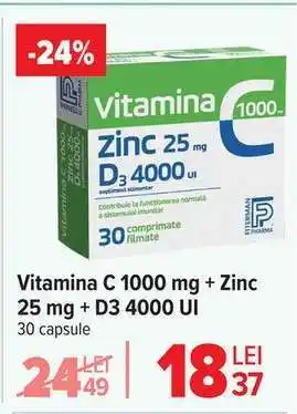 Vitamina C 1000 mg + Zinc 25 mg + D3 4000 UI Ofertă în Catalogul Carrefour