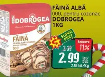 Acum în ofertă la Diana Supermarket: Făină albă 000, pentru cozonac DOBROGEA ✅ Valabil de la 10-12 până la 31-12.