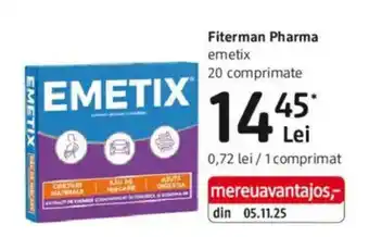 Verificați care este cel mai ieftin produs dintre toate ofertele! Dacă doriți să știți dacă magazinul DM are cea mai mare reducere pentru Fiterman Pharma emetix, puteți să îl comparați pe pagina Topic sau cu alte magazine.