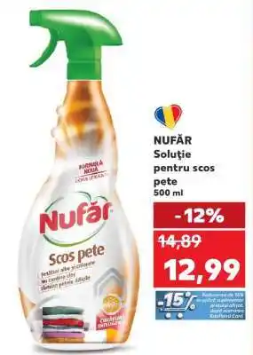 Acum în ofertă la Kaufland: NUFĂR Soluție pentru scos pete 500 ml ✅ Valabil de la 7-01 până la 13-01.