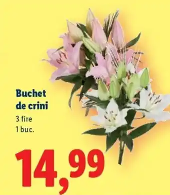 Lidl oferă o colecție largă de produse, pe lângă Buchet de crini. Fiți cu ochii în patru pe Catalog Lidl săptămânal pentru a găsi cele mai bune oferte și promoții. Pe langa Buchet de crini, mai puteti gasi si urmatoarele oferte: Buchet de crini, Buchet de trandafiri & Buchet de lalele.