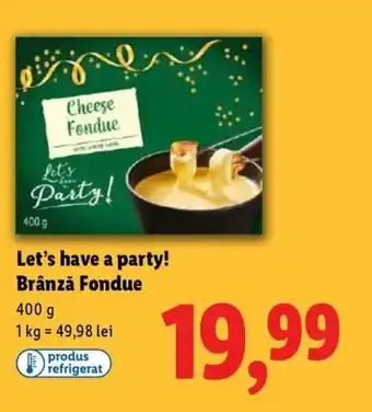 Acum în ofertă la Lidl: Let's have a party! Brânză Fondue ✅ Valabil de la 27-12 până la 31-12.