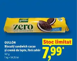 GULLÓN Biscuiți sandwich cacao şi cremă de lapte, fără zahăr