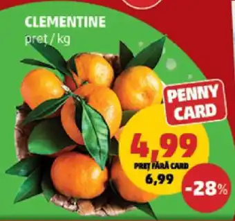 Clementine este acum în Ofertă la Penny, valabilă din 07-01-2026 până la 13-01-2026. Consultați cel mai recent Catalog Penny pentru mai multe Oferte speciale. Comandați Clementine online prin intermediul site-ului Penny sau cumpărați dintr-o locație apropiată. Pe Ofertelecatalog.ro găsiți mereu cele mai bune Oferte Clementine. Comparați Ofertele actuale pentru a vedea dacă Clementine va fi din nou în Catalog săptămâna viitoare. Publicăm informațiile rapid, astfel încât să vă puteți planifica cumpărăturile inteligent, să fiți la curent cu cele mai recente Oferte Clementine și să descoperiți unde găsiți cel mai bun pret. Ajustați lista de cumpărături și consultați și Catalogul Penny de săptămâna viitoare pentru acțiuni exclusive.Întrebări frecvente despre Clementine