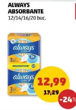 | Absorbante Egészségügyi betét Always ultra/ Always Platinum | PROFI | 16,99 RON | 14,19 RON | -16% | 07 ianuarie 2026 | 20 ianuarie 2026 | |