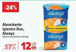 | Absorbante igienice Duo, Always | Carrefour | 12,96 RON | 28 ianuarie 2026 | 03 februarie 2026 | |||