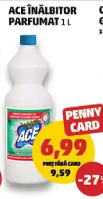 | Ace înălbitor parfumat 1 L. | Penny | 8,15 RON | 6,99 RON | -14% | 27 august 2025 | 02 septembrie 2025 | |