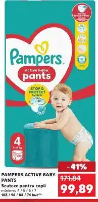 | PAMPERS Active Baby Pants Scutece pentru copii 76/66/56/48/38 buc | Kaufland | 91,50 RON | 79,99 RON | -12% | 17 decembrie 2025 | 23 decembrie 2025 | |