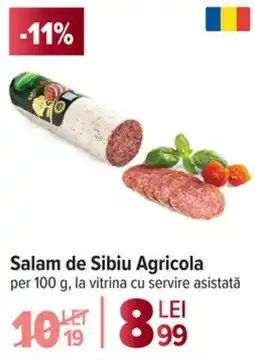 | Salam de Sibiu Agricola 300 g | Carrefour | 32,29 RON | 27,49 RON | -14% | 26 noiembrie 2025 | 02 decembrie 2025 | |
