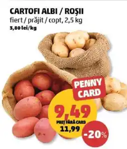 | Cartofi albi - fiert/copt/ prăjit | Penny | 11,99 RON | 8,79 RON | -26% | 17 decembrie 2025 | 26 decembrie 2025 | |
