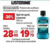 | Apă de gură Cool Mint/ Fresh Burst/Theeth&Gum, Listerine 500 ml | Carrefour | 28,50 RON | 20,49 RON | -28% | 08 iulie 2025 | 15 iulie 2025 | |