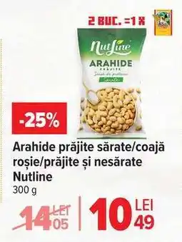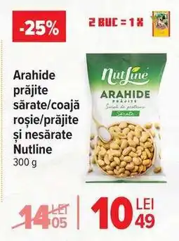 | Arahide prăjite și sărate/nesarate/în coajă roșie, Nutline | Carrefour | 11,24 RON | 28 ianuarie 2026 | 03 februarie 2026 |
