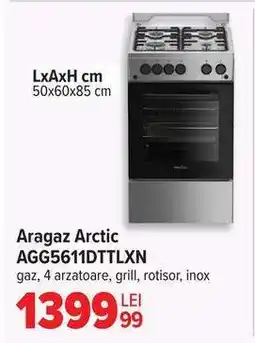 | 1 | Aragaz Arctic AGG5611DTTLXN | Carrefour | 1.399,99 RON | 04 februarie 2026 | 17 februarie 2026 | Vezi oferta | |||