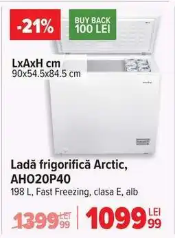| 2 | Ladă frigorifică Arctic AHO20P40 | Carrefour | 1.099,00 RON | 04 februarie 2026 | 17 februarie 2026 | Vezi oferta | |||