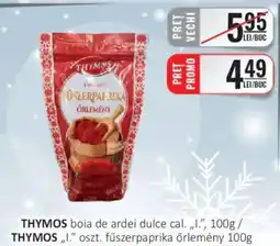 | 1 | THYMOS boia de ardei dulce 100 g | CBA | 5,95 RON | 4,49 RON | 1,46 RON Discount | 16 ianuarie 2026 | 31 ianuarie 2026 | Vezi oferta | |