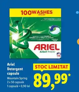 | 1 | Ariel Detergent capsule | Lidl | 89,99 RON | 26 ianuarie 2026 | 01 februarie 2026 | Vezi oferta | |||