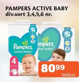 | PAMPERS Pants active baby div. sort. | Unicarm | 61,39 RON | 24 octombrie 2024 | 27 octombrie 2024 | |||