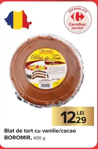 | Boromir Blat de tort cu vanilie / cacao 400 g | Carrefour Market | 12,29 RON | 29 decembrie 2022 | 11 ianuarie 2023 |