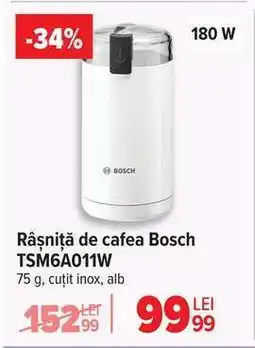 | Râşniţă de cafea Bosch TSM6A011W | Carrefour | 149,99 RON | 119,99 RON | -20% | 01 iulie 2025 | 08 iulie 2025 | |