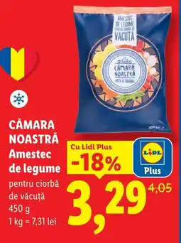 | 2 | CĂMARA NOASTRĂ Amestec de legume 450 g | Lidl | 4,05 RON | 3,29 RON | -18% | 14 aprilie 2026 | 19 aprilie 2026 | Vezi oferta | |