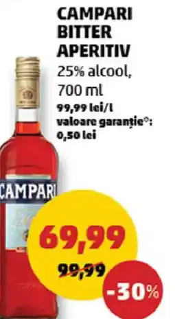 | Campari Aperitiv 25% alcool 0.7 l | Auchan | 99,99 RON | 70,99 RON | -29% | 05 noiembrie 2025 | 18 noiembrie 2025 | |