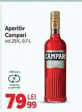 | Aperitiv Campari 0.7 l | Carrefour | 98,49 RON | 75,99 RON | -22% | 26 februarie 2025 | 09 martie 2025 | |