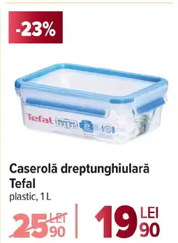 | 2 | Caserolă dreptunghiulară Tefal 1 L. | Carrefour | 25,90 RON | 19,90 RON | -23% | 27 decembrie 2025 | 07 ianuarie 2026 | Vezi oferta | |