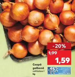 | Ceapă galbenă calitatea l 1 kg | Kaufland | 6,49 RON | 4,99 RON | 1,50 RON Discount | 07 iunie 2023 | 13 iunie 2023 | |