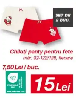 | 2 | Chiloti panty pentru fete | Kik | 15,00 RON | 01 februarie 2026 | 01 martie 2026 | Vezi oferta | |||