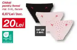 | Set 3 chiloţi damă | Selgros | 34,99 RON | 19,99 RON | -42% | 22 ianuarie 2026 | 05 februarie 2026 |