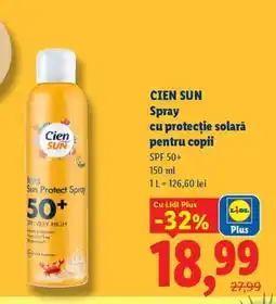 | 4 | CIEN SUN Spray cu protecție solară | Lidl | 23,99 RON | 20 aprilie 2026 | 26 aprilie 2026 | Vezi oferta | |||