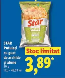 | 1 | STAR Pufuleți cu gust de arahide și alune | Lidl | 3,89 RON | 04 mai 2026 | 10 mai 2026 | Vezi oferta | |||