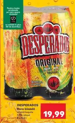 | DESPERADOS Bere blondǎ 4 x 0.5 L | Kaufland | 25,99 RON | 19,99 RON | -23% | 14 mai 2025 | 20 mai 2025 | |