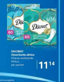 | DISCREET Absorbante zilnice 60 buc | Selgros | 19,32 RON | 11,14 RON | -42% | 14 noiembrie 2025 | 27 noiembrie 2025 | |