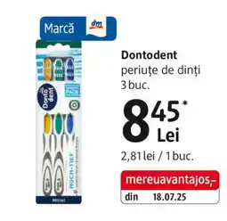 | Dontodent perie de dinți medie interdentară | DM | 5,45 RON | 17 septembrie 2025 | 14 octombrie 2025 | |||