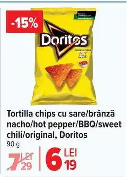 | Tortilla chips brânză/original/picant Doritos | Carrefour | 9,89 RON | 25 martie 2026 | 05 aprilie 2026 | |||