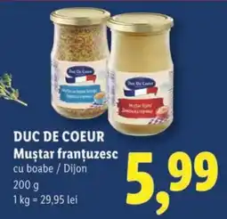| Duc de Coeur Muştar franţuzesc 200 g | Lidl | 5,49 RON | 21 iulie 2025 | 27 iulie 2025 | |||