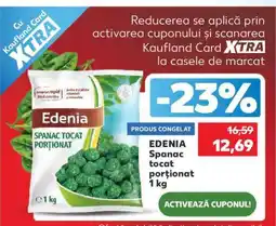 | EDENIA Spanac tocat porţionat 1 kg | Kaufland | 14,49 RON | 9,99 RON | -31% | 06 august 2025 | 12 august 2025 | |