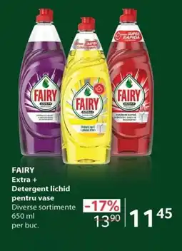 | FAIRY Extra + Detergent lichid pentru vase 650 ml | Selgros | 13,90 RON | 11,45 RON | -17% | 04 octombrie 2024 | 17 octombrie 2024 | |