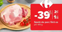 | Spată de porc fără os 100 g | Carrefour Market | 2,29 RON | 1,69 RON | -26% | 12 august 2025 | 19 august 2025 | |