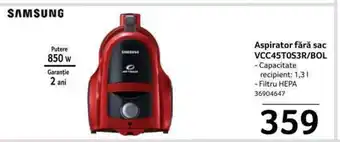 | Aspirator fără sac -VCC43Q0V3B | Selgros | 379,90 RON | 289,00 RON | 90,90 RON Discount | 19 aprilie 2024 | 02 mai 2024 | |