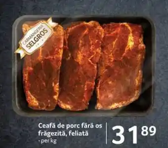 | Ceafă de porc fără os frǎgezitǎ, feliată | Selgros | 32,39 RON | 03 mai 2024 | 16 mai 2024 | |||