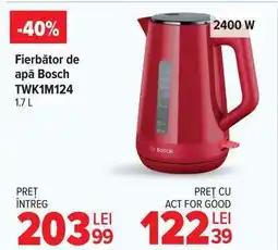 | Fierbător de apă Bosch TWK1M124 | Carrefour | 199,99 RON | 139,99 RON | 60,00 RON Discount | 20 martie 2024 | 26 martie 2024 |