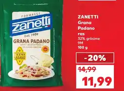 | ZANETTI Grana Padano ras 100 g | Kaufland | 14,99 RON | 11,99 RON | -20% | 14 ianuarie 2026 | 20 ianuarie 2026 | |