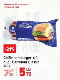 | 3 | Chifle hamburger x 4 buc., Carrefour Classic | Carrefour | 5,79 RON | 15 aprilie 2026 | 05 mai 2026 | Vezi oferta | |||
