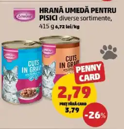 | 2 | HRANĂ UMEDĂ PENTRU PISICI | Penny | 2,79 RON | 11 februarie 2026 | 17 februarie 2026 | Vezi oferta | |||