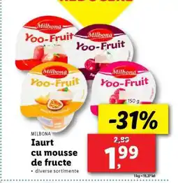 | Milbona Iaurt cu mousse de fructe | Lidl | 1,99 RON | 16 iunie 2025 | 22 iunie 2025 | |||