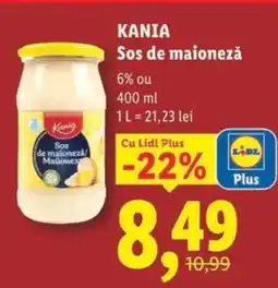 | KANIA Sos de maioneză 400 ML | Lidl | 9,99 RON | 7,99 RON | -20% | 17 februarie 2025 | 23 februarie 2025 | |